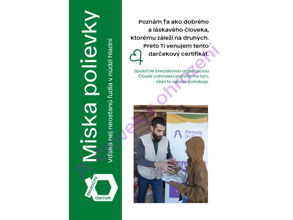 Vojna alebo náhla prírodná katastrofa dokážu ľudí v krátkom čase pripraviť o všetko, čo budovali celý život. V ťažkých situáciách dokáže miska polievky viac než len zasýtiť. Častokrát je prvým povzbudením a nádejou, že sa človek dokáže zotaviť a vybudovať svoj život odznova.